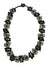 This elegant handmade beaded necklace features a refined pattern of black and clear glass beads, delicately woven into a floral design. The monochrome palette creates a timeless look — inspired by the contrast of ice and stone found across the northern landscape of Eeyou Istchee.
