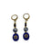 These elegant handcrafted earrings feature rich sapphire-blue Czech floral beads paired with soft, mist-blue gemstone spheres, creating a graceful blend of depth and luminosity. Faceted crystals and gold-tone separators add subtle sparkle, while polished gold lever-back hooks provide a secure, refined finish.
