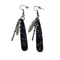 Elegant shimmering silver resin drop paired with cool-tone beaded dangle and silver feather charm.