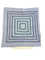 A geometric, concentric square design symbolizing balance, direction, and continuity. Soft blue and grey tones are layered with delicate floral accents and subtle red hand-tied stitching that adds warmth and movement. Finished with a coordinating solid red backing.