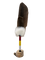 This handcrafted feather pen stands proudly on a natural birch wood base, wrapped in the four sacred colors of the Medicine Wheel — black, red, yellow, and white. The pen features a genuine feather adorned with a soft white fur accent, symbolizing balance, wisdom, and connection to spirit.