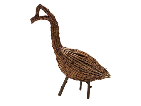 Handcrafted tamarack bird decoy, traditionally made from tightly woven tamarack twigs. Tamarack decoys like this one have a long history in Cree and other Indigenous cultures of northern Canada. Originally,...